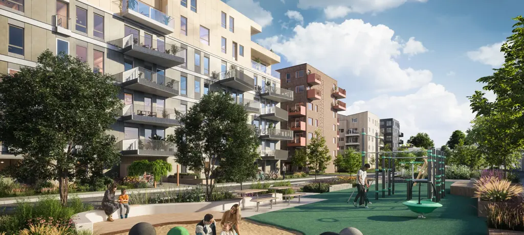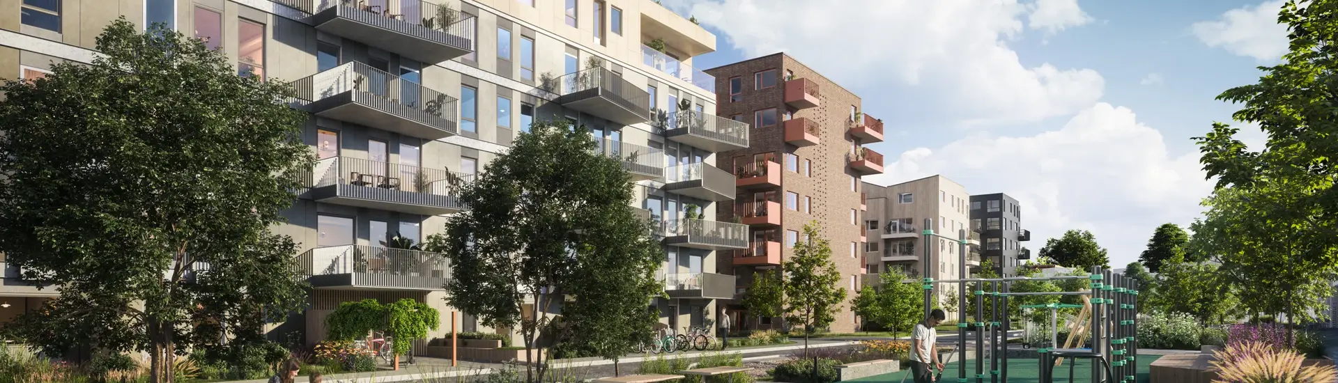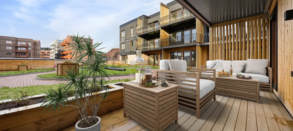 Et godt eksempel på denne strategien finner du i Lørenskog, hvor vi bygger leiligheter i Skårerløkka. Her kan du som beboer få tilgang til et stort flerbrukslokale, gjesteleilighet, sykkelverksted og en takterrasse på 400 kvm. med utekjøkken og grønnsakshage.