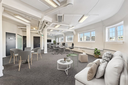 Vi har nå et ledig kontorlokale ledig i toppetasjen i Biskop Gunnerus gate 2. Eiendommen har en svært sentral og synlig beliggenhet like ved Jernbanetorget, noe som sikrer enkel adkomst for både ansatte og besøkende med offentlig transport. Lokalet er i dag innredet med et åpent kontorlandskap, supplert med flere møterom, separate kontorer og teamrom, samt et kjøkken. Dette arealet kan totalrenoveres og tilpasses helt etter den nye leietakerens ønsker og behov. Se vedlagt bilde for et innredningsforslag. Arealnummer 4601 har et nettoareal på 227 kvm og et bruttoareal på 318,7 kvm.